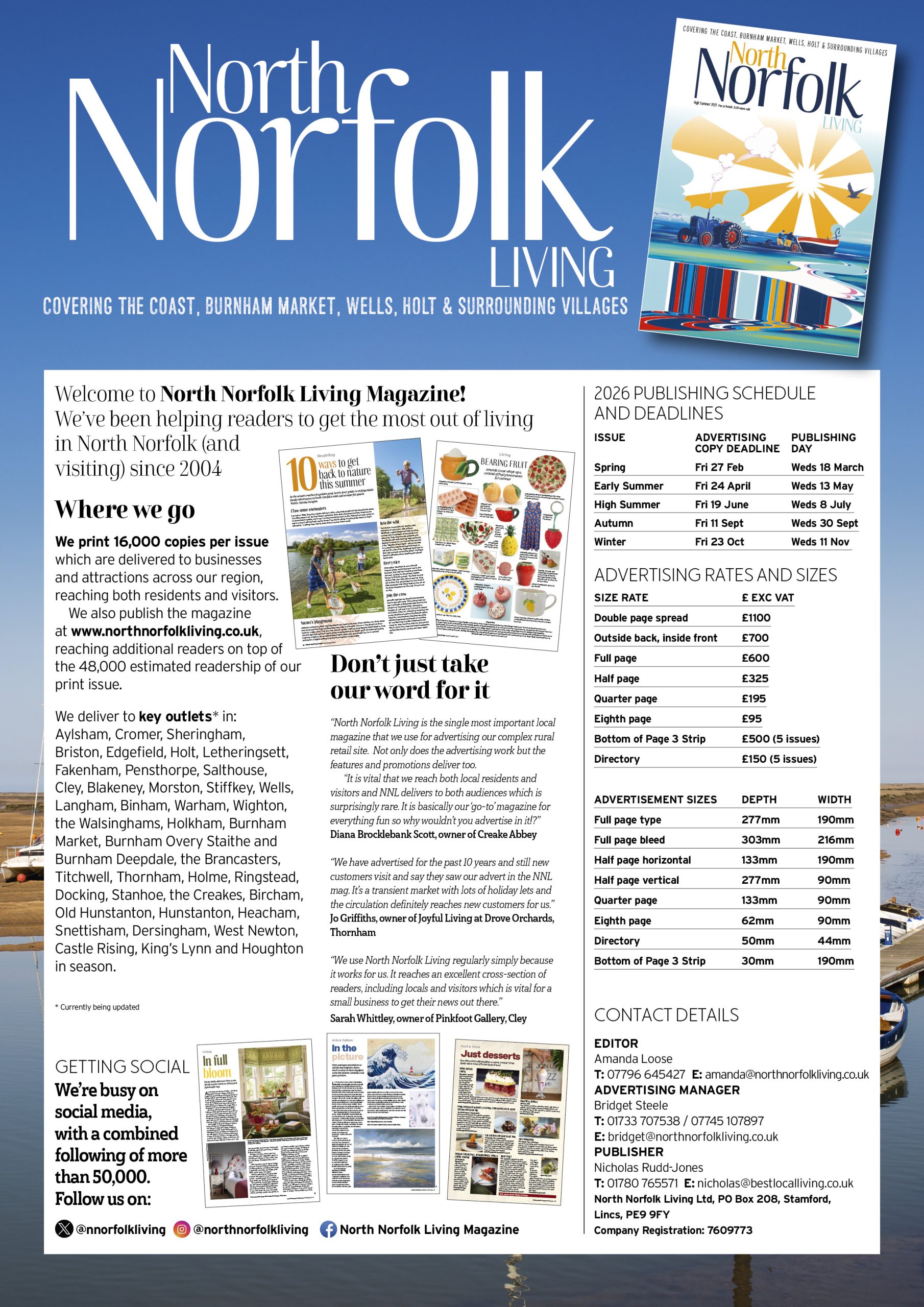 Hello and welcome to North Norfolk Living Magazine! We’ve been helping readers get the most out of living in North Norfolk (and visiting, too) for more than 20 years.