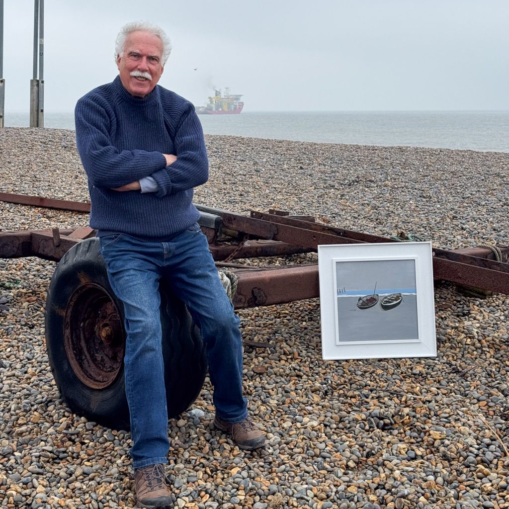 Cromer Artspace on the Prom is playing host to a solo exhibition by North Norfolk artist Chris Kirby, from 26 March to 6 April. Known for his paintings of old wooden crab and whelk boats, Chris works mainly in acrylics and occasionally oils. ‘I’ve been painting boats for many years,’ he tells me, ‘but became really interested in painting Norfolk’s traditional working boats since moving to Norfolk around 13 years ago. I just love their shape and the way they were hand-crafted by generations of boat builders. I’m a friend and volunteer at Rescue Wooden Boats based in Stiffkey that renovates and maintains these old fishing boats – and promotes their part in Norfolk’s rich maritime history.’