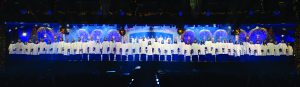 As compère Lloyd Hollett reminds us in his quick-witted way, it’s no mean feat to put on this three-hour spectacle: 23 dancers; over 40 singers; a 32-piece orchestra – all performing across a 130ft stage – plus 240 front of house staff; an audience of 1400… Not to mention the state-of-the-art sound and lighting system and a slick creative team led by Director and Producer John Cushing OBE. This is West End spec and then some, the talent is prodigious.